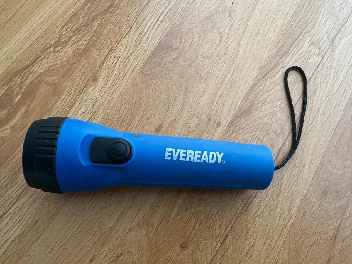 Original Eveready LED Flashlight – Reliable & Durable This is a classic, sturdy Eveready flashlight, perfect for home use, emergencies, or outdoor activities. It features a bright LED light source and a durable blue plastic body. Key Features: